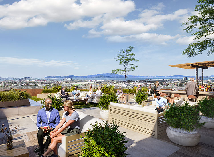 • 30,000 square feet of private terraces and balconies with unobstructed views of San Francisco, Marin, and the East Bay Hills