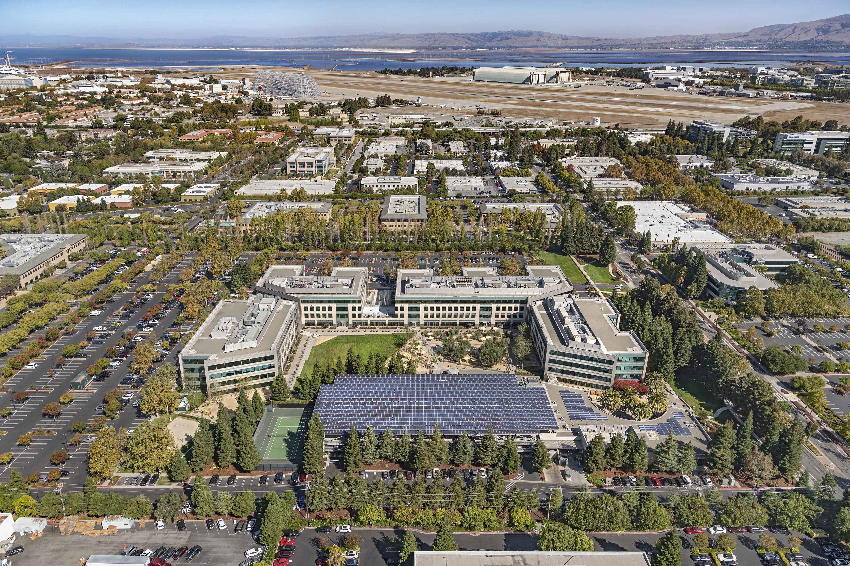 The campus consists of four interconnected, four-story buildings arranged in a U-shape around a central outdoor workspace and amenity courtyard. With flexible floorplates and walkable connectivity across nearly every level, 350 Ellis offers a collaborative campus setting designed to support innovation and high-performance teams.